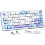 Redragon Cyrus Pro е безжична и жична механична гейминг клавиатура с уникален бяло-лилав дизайн и ярка RGB подсветка. Има здрава конструкция от пластмаса, оборудвана с линейни суичове Redragon Grey и висококачествени PBT капачки за клавиши. Всички 81 клавиша поддържат n-key rollover за пълно предотвратяване на ghosting.