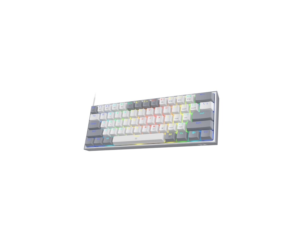 Redragon 60% клавиатура с кабел, със свежо оформление на клавишитев комбинация от 2 цвята. Ултракомпактните 61 клавиша с нов цвят на капачката освобождават ценно място на бюрото. До 20 предварително зададени режима на подсветка са свободни за избор от самата клавиатура. Яркостта и скоростта на потока също се регулират. Изберете вашите собствени предпочитани режими за всяка игра.