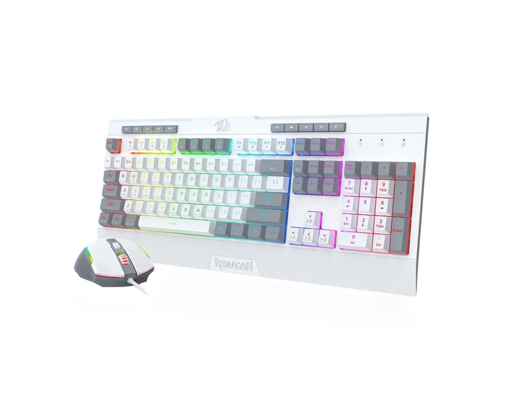 Комплект клавиатура и мишка Redragon S151W Gaming Essentials с RGB подсветка - бяла