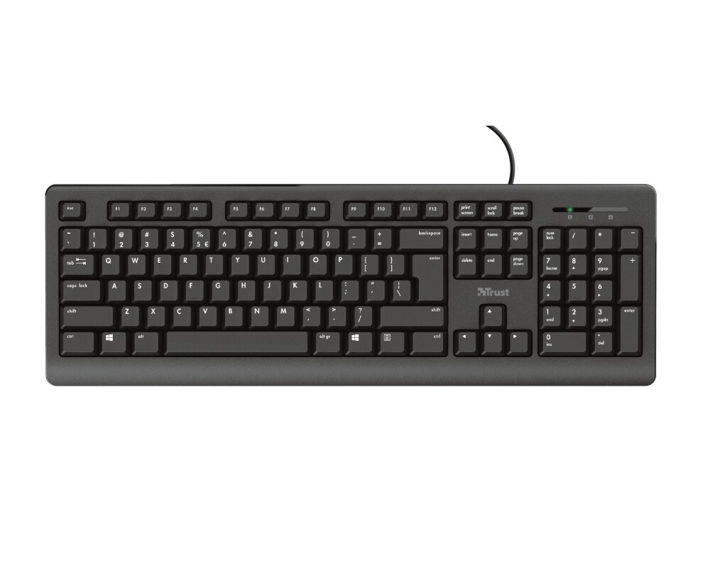 Trust Primo е страхотна клавиатура, която има класически изчистен дизайн, който ви позволява да работите удобно и ефективно. Тя разполага с пълен брой клавиши, които издържат на разливане с течност. Освен това може да регулирате височината й чрез сгъваемите й крачета, така че да работите по възможно най-удобният за вас начин. А благодарение на безшумните й клавиши ще пишете часове наред, без да притеснявате колегите си. Trust Primo работи чрез стабилна и устойчива USB връзка, като кабела й има дължина от 180 см. Освен това тя не изисква никакви допълнителни драйвери и настройки и започва да работи веднага след свързване.