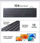 Дизайнът е семпъл и функционален, подходящ за офис работа, учене и ежедневна употреба. Лесната инсталация чрез Plug & Play USB връзка позволява бързо и безпроблемно свързване, без нужда от допълнителни драйвери. Ugreen KU004 е отличен избор за потребители, които търсят качествена клавиатура на достъпна цена с удобен и сигурен кабелен интерфейс.