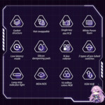8000 mAh battery Gasket Structure Hot-swappable switches Low latency mode N-Key rollover Silicone dampening pads Single key slot PCB White Poron foam |