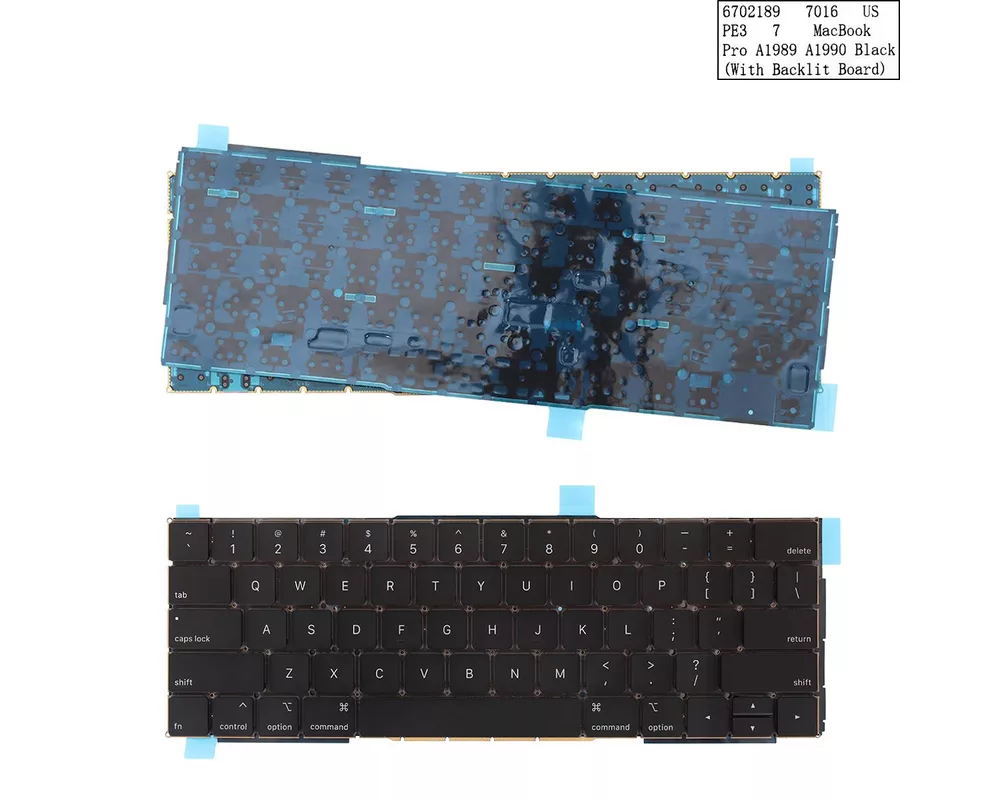 Клавиатура за лаптоп Apple Macbook Pro A1989 A1990 Черна Без Рамка (Малък Ентър) с Подсветка / Black Without Frame US With BacklitLayout: US (Ентър на един ред) | Цвят: Черен | Без рамка |С подсветкаТази клавиатура е съвместима със следните модели: