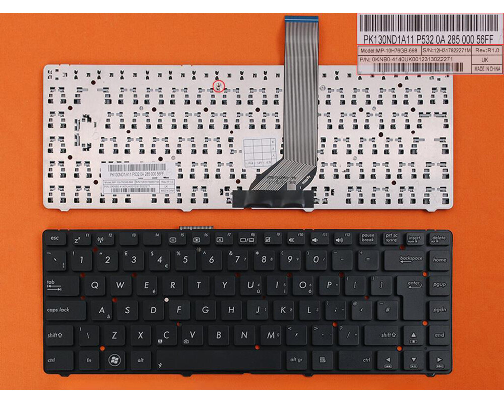 Клавиатура за лаптоп Asus A45A K45VM K45VS A85A Черна Без Рамка (Голям Ентър) / Black Without Frame UKLayout: UK (Ентър на два реда) | Цвят Черен |Без рамкаТази клавиатура е съвместима със следните модели: