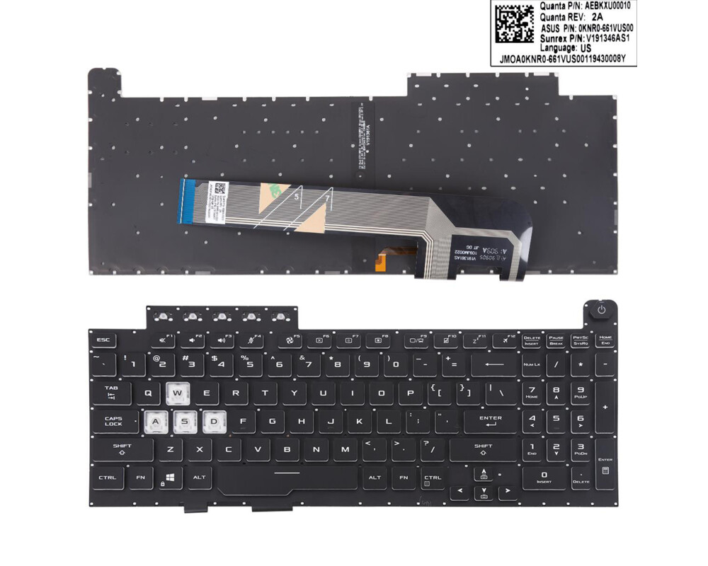 - Клавиатура за лаптоп Asus TUF Gaming F15 FX506 FA506 FA506Q FX506L FA506U FX706L FX706HM Черна Без Рамка с Малък Ентър (ID: 798754)