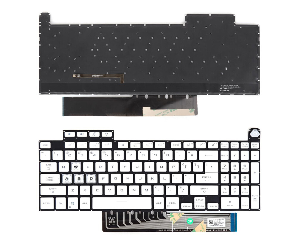 Клавиатура (Laptop Keyboard) за лаптоп Asus TUF Gaming FX507 FX507Z FA507 FA507R Бяла Без Рамка с Малък Ентър (Without frame), С Подсветка (With Backlit) USВ посочените модели лаптопи могат да се монтират различни клавиатури, преди да поръчате сравнете със старата!