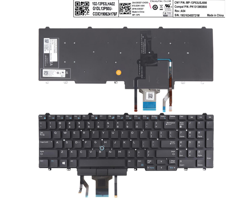 Клавиатура за лаптоп Dell E5550 Black Without Frame With Point Stick Backlit US (Ентър на един ред) - Оригинална