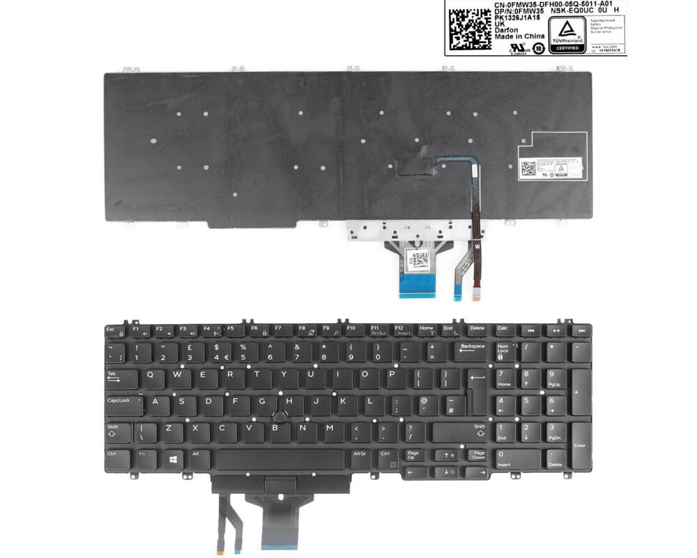 Клавиатура за лаптоп Dell Precision 7530 7540 7730 7740 Черна Без Рамка с Пойнтинг Стик US/UKLayout: UK / US Цвят: Черен | Без Рамка | с Пойнтинг Стик