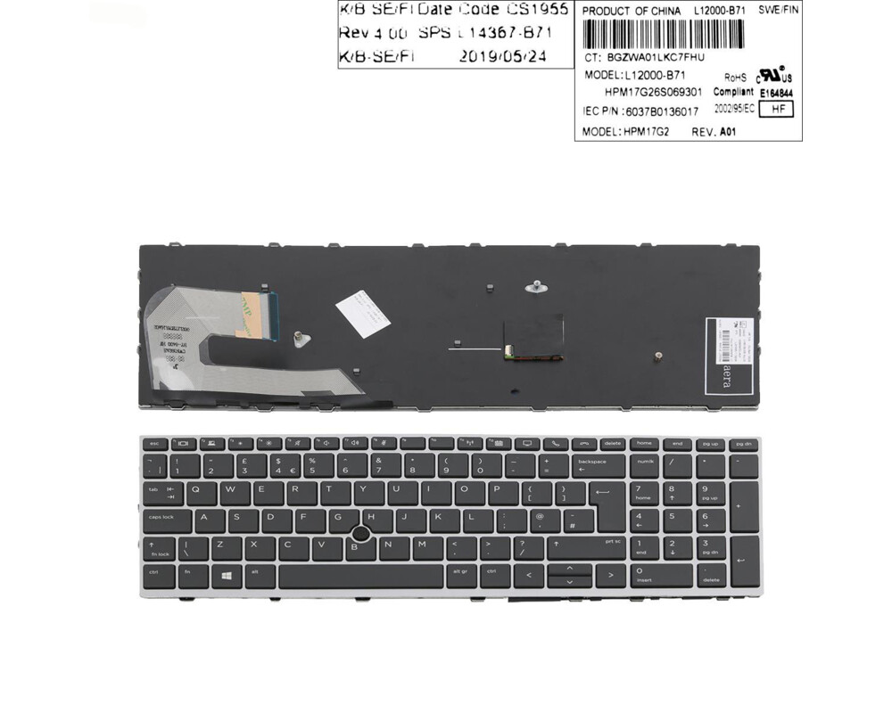 Клавиатура за лаптоп HP EliteBook 755 G5 850 G5 ZBook 15u G5 Черна със Сребриста Рамка / Silver Frame Black With Pointing StickLayout : UK / US (* в зависимост от наличността) | Цвят Черен | Сребриста рамка | Pointing StickТази клавиатура е съвместима със следните модели: