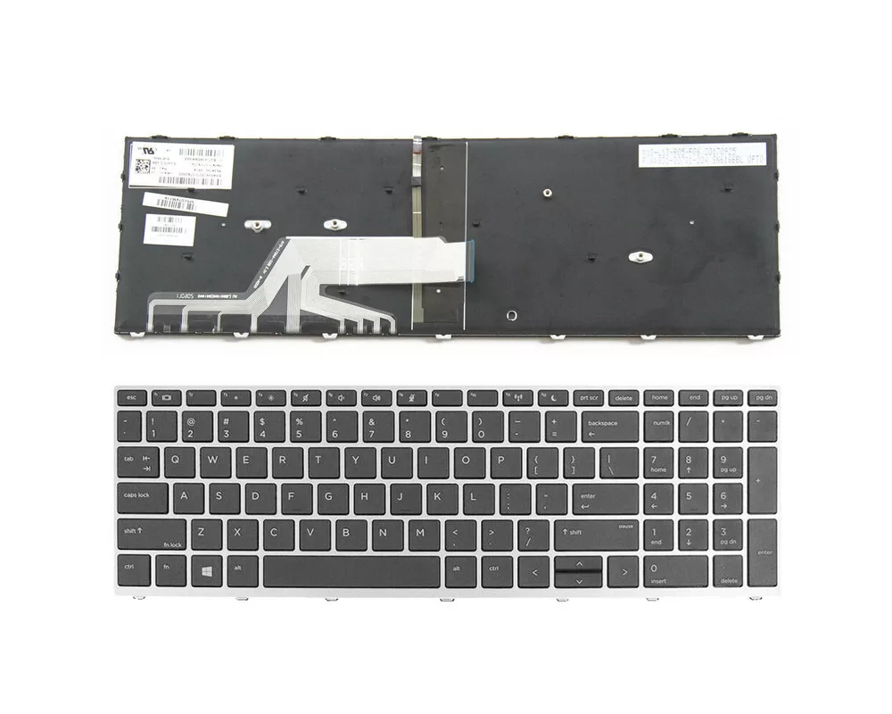 Клавиатура за лаптоп HP Probook 450 G5 455 G5 470 G5 Черна със Сребриста Рамка с Подсветка / Silver Frame Black With BacklitLayout: UK / US (* в зависимост от наличността) | Цвят: Черен | Сребриста рамка | ПодсветкаТази клавиатура е съвместима със следните модели:
