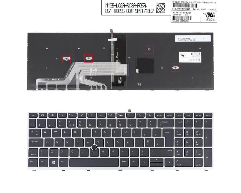 Клавиатура за лаптоп HP Probook 450 G5 455 G5 470 G5 Черна със Сребриста Рамка с Подсветка с Пойнтинг Стик / Silver Frame Black With Backlit With Pointing Stick - ОригиналнаLayout: UK / US (* в зависимост от наличността) | Цвят: Черен | Сребриста рамка | ПодсветкаТази клавиатура е съвместима със следните модели: