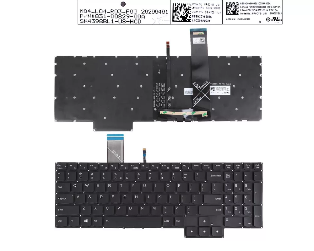 - Клавиатура за лаптоп Lenovo Legion Y7000 2020 R7000 2020 Y7000P R7000P 2020 Black Without Frame Full Colorful Backlit US/UK (ID: 896997)