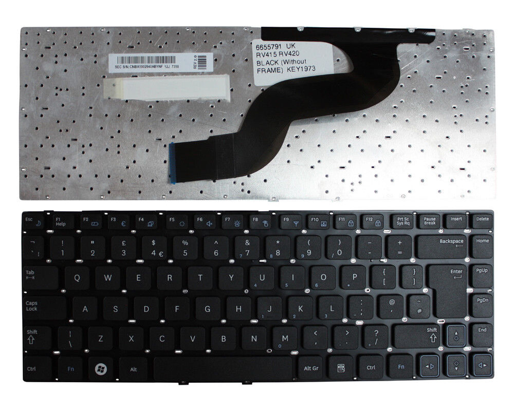 Клавиатура за лаптоп Samsung RV411 RV412 RV415 RV420 Черна Без Рамка (Голям Ентър) / Black Without Frame UKLayout: UK (Ентър на два реда) | Цвят: Черна | Без рамкаТази клавиатура е съвместима със следните модели: