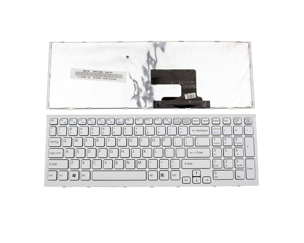 Клавиатура за лаптоп Sony Vaio VPC-EH Бяла с Бяла Рамка / White Frame WhiteLayout: UK / US (* в зависимост от наличността) | Цвят: Бял | С рамкаТази клавиатура е съвместима със следните модели: