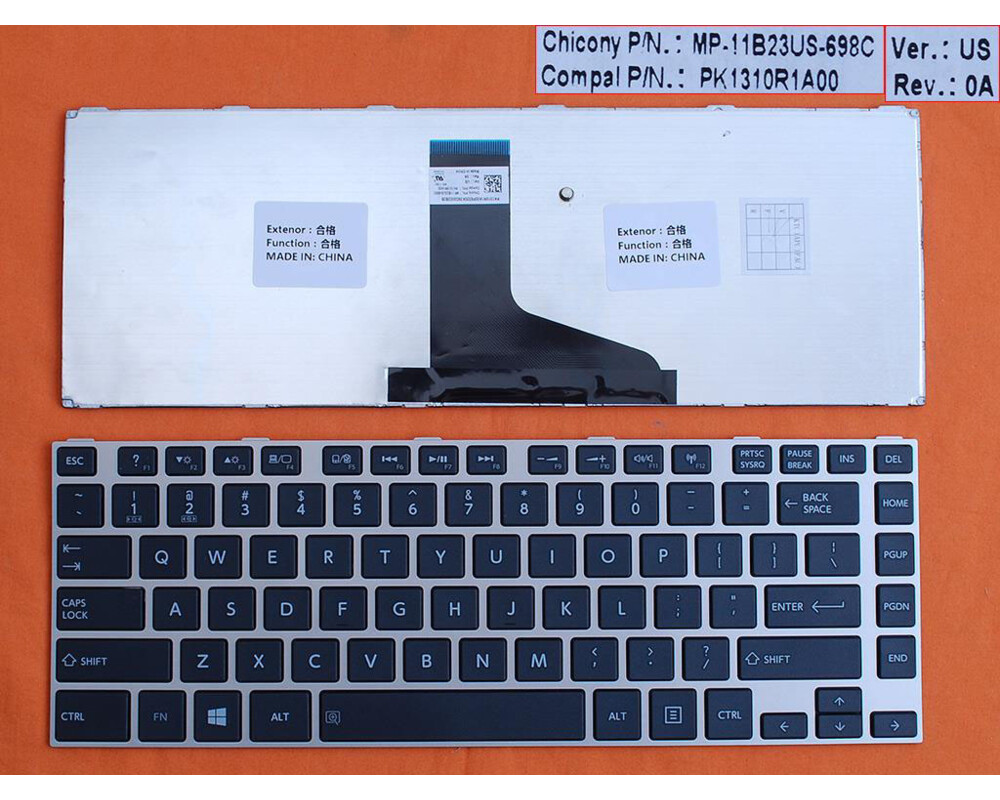 Клавиатура за лаптоп Toshiba L830 L840 Черна със Сребриста Рамка / Silver Frame BlackLayout: UK / US (* в зависимост от наличността) | Цвят: Черен | Сребриста рамкаТази клавиатура е съвместима със следните модели:
