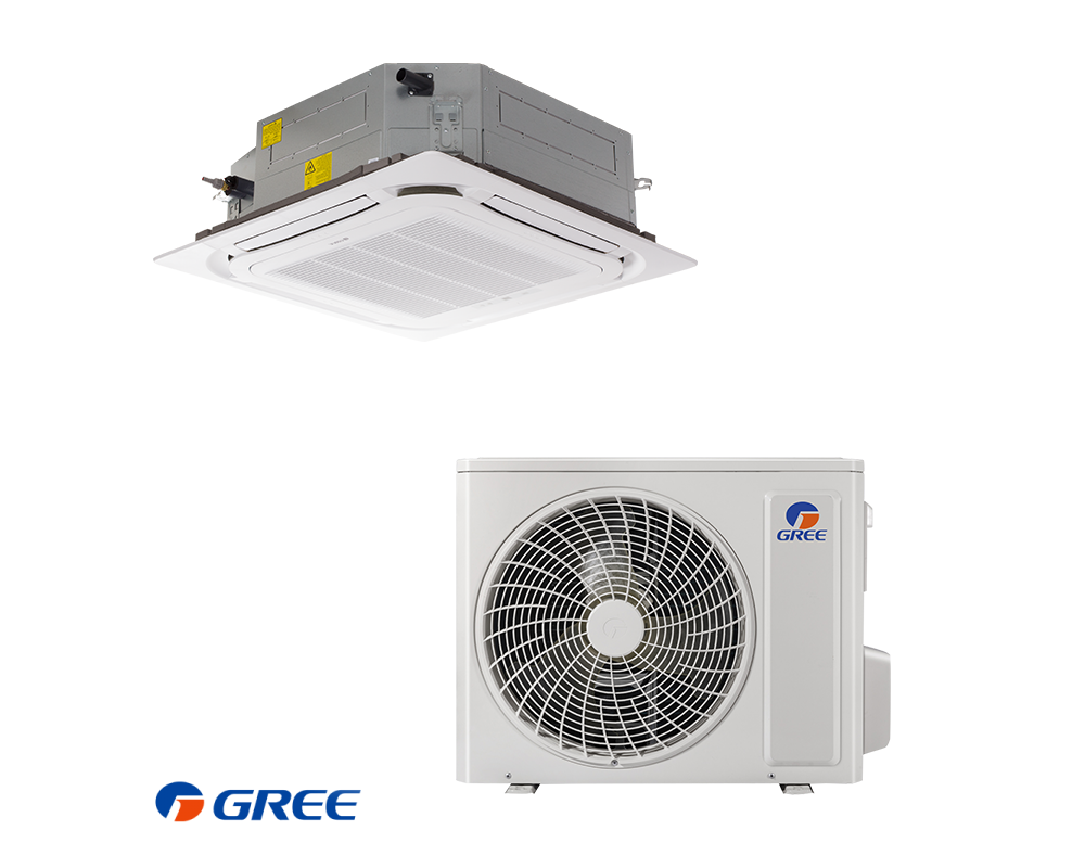 Касетъчен климатик GUD50T1 / GUD50W1NhA-S на климатични системи Gree е 4-пътна касета с висок клас на енергийна ефективност, подходяща за монтиране в окачени тавани в търговски или офис помещения. Подобрената конструкция на тялото ви гарантира ниско ниво на шум и лесна поддръжка. (в комплекта е включено безжично IR дистанционно)