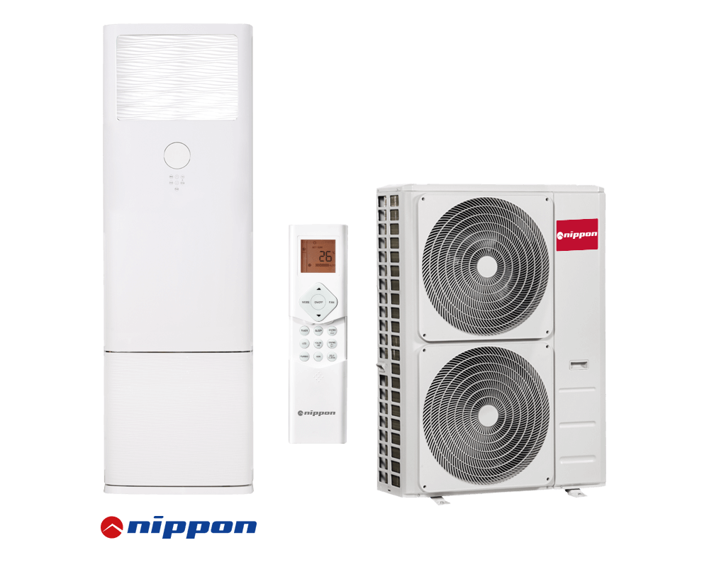 Колонният климатик Nippon NFGD-48HRFN8-Q / NOE30U-48HFN8-R е идеално решение за ресторанти, заседателни зали, търговски обекти и други големи помещения с площ до 100 кв.м. Той е със стилен дизайн на вътрешното тяло и лесно, интуитивно управление. Моделът притежава мощен мотор и енергиен клас A++ на охлаждане и A+ на отопление. Гаранция: 24 месеца