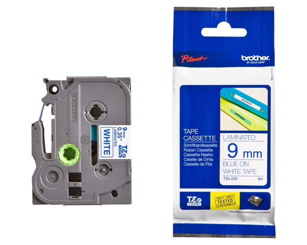 - BROTHER P-Touch TZE-223 blue on white 9mm (ID: 58269)