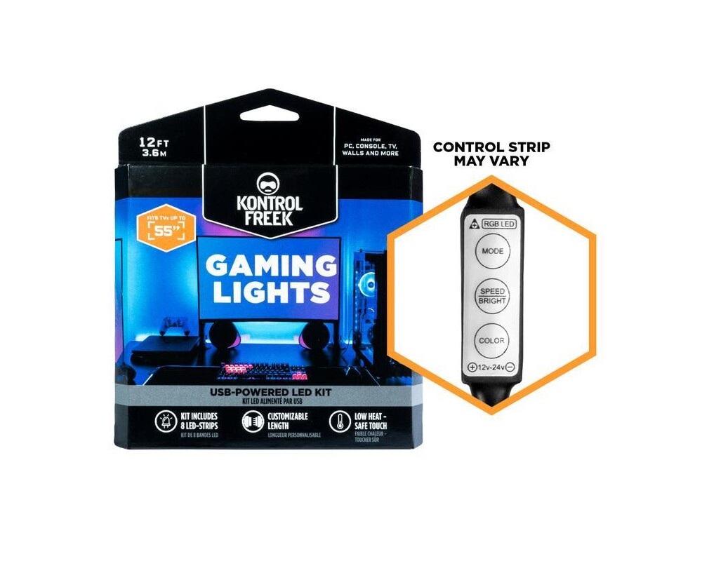 Light up your game with KontrolFreek’s Gaming Lights. Perfect for TikTok, our USB powered LED strip kit allows you to create an immersiveand customizable lighting experience to complete your setup and even improve your picture quality. Personalize your look with multiple options for colors, effects, speeds and brightness as well as configurable length up to 12ft/3.6m.