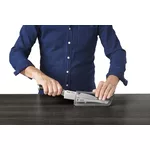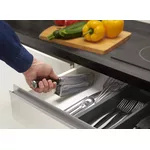 Вашият удобен и винаги остър кухненски нож. Ever Sharp е най-безопасният и иновативен начин за рязане и заточване. Благодарение на изключителната технология за заточване, вградена директно в калъфа на ножа, острието се заточва автоматично под идеален ъгъл преди и след всяка употреба. Вградената система за заключване - лесно освобождавана чрез натискане на дръжката - държи калъфа здраво на място, а защитните крила отвеждат пръстите далеч от острието, за безопасно заточване и пълно спокойствие. Изработен от немска неръждаема стомана за впечатляваща издръжливост във времето, този универсален 16,5-сантиметров нож за готвачи е идеален за всички ежедневни нужди при приготвяне на храна и се съхранява лесно на кухненския плот или прибран в чекмеджето.