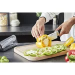| Характеристики | 16.5cm Chef knife for everday preparations - dicing, chopping and slicing Dual pivot sharpening and blade guidance systems sharpen the blade at the perfect angle before and after each use patent pending Locking system keeps knife in place until ready for use and safety wings guide fingers away from blade to safely sharpen Stainless Steel Cover detaches so that base and sharpener can be cleaned with a brush, while aeration holes ensure complete dryness. Hand wash and towel dry cover and knife 35.2 x 10 x 5.2 сm |