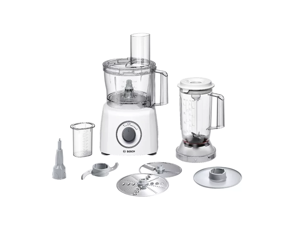 MultiTalent 3 - компактен и многостранен кухненски помощник с повече от 30 функции. Превръща готвенето в детска игра. Мощен мотор: бърза и лесна обработка с две настройки на скоростта и импулсна функция. Повече от 30 функции: включени аксесоари за нарязване, настъргване и смесване. Прозрачна пластмасова купа 2,3 л за 500 g брашно + добавки (макс.количество тесто) вкл.капак с тапа. Практично: аксесоарите се прибират в купата и по този начин уредът е винаги готов за работа. Благодарение на разбираеми обозначения аксесоарите се монтират бързо и лесно. Аксесоари, подходящи за миене в съдомиялна машина: лесно и комфортно почистване.