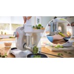Многофункционален уред за приготвяне на голямо разнообразие от различни ястия. Сега е с още по опростен дизайн и с интегрирана везна. Превъзходно приготвени теста благодарение на Smart dough sensor както и гъвкавост чрез перфектно съгласувани аксесоари. Голяма стоманена купа 3.9 л. Специална форма за оптимално приготвяне на теста ( до 2.7 кг от смес за кексове или 1.9 кг тесто). Вградена везна: всички съставки могат да се претеглят директно в купата или аксесоарите. Перфектни резултати чрез 3D PlanetaryMixing, тридименционална миксираща система, за оптимално разбъркване на продуктите. Голяма гъвкавост: благодарение на разнообразието от аксесоари с високо качество. Части без BPA: здравословно, безопасно и удобно приготвяне на вашите ястия. Изработена от нечуплив, високоустойчив и BPA-free тритан.
