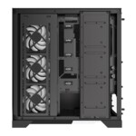 | Охлаждане | Fan Included: 5 x 120mm; (4 x Reversed Fans + 1 x Regular Fan); Fan Support: REAR :120mm x 1 / 140mm x 1; TOP:120mm x 3 / 140mm x 2; Side:120mm x 3; Bottom: 120mm x 1 / 140mm x 1; PSU shroud :120mm x 2; Radiator Support: REAR:120mm; TOP:Up to 360mm; Side:Up to 360mm (Vertical GPU Mounting only) |
