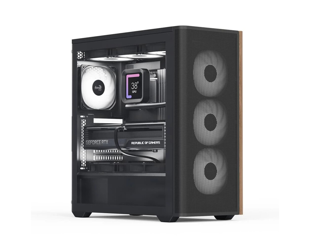 | ДОПЪЛНИТЕЛНИ | Wood-accented mesh front panel design exhibits trendy appeal and air ventilation for better circulation Mid tower case that allows for a powerful PC build Includes a 5-port PWM ARGB control hub to connect your Addressable RGB fans SPCC body material: Durable and robust construction for longevity |
