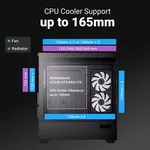 Fits CPU air coolers up to 165mm for powerful and quiet cooling Full tempered glass front and side panels showcase your build in stunning detail Includes three 120mm ARGB fans (two reverse-blade) with Rifle Bearing Magnetic and PVC dust filters make cleaning fast and hassle-free Snap-fit side glass panel allows easy upgrades and maintenance Supports GPUs up to 418mm for top-tier gaming and creative performance |