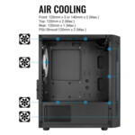 | Съвместими вентилатори | Front: 120 mm x 2 or 140 mm x 2 (Max.), PSU Shroud: 120 mm x 2 (Max.), Rear: 120 mm x 1 (Max.), Top: 120 mm x 2 (Max.) |