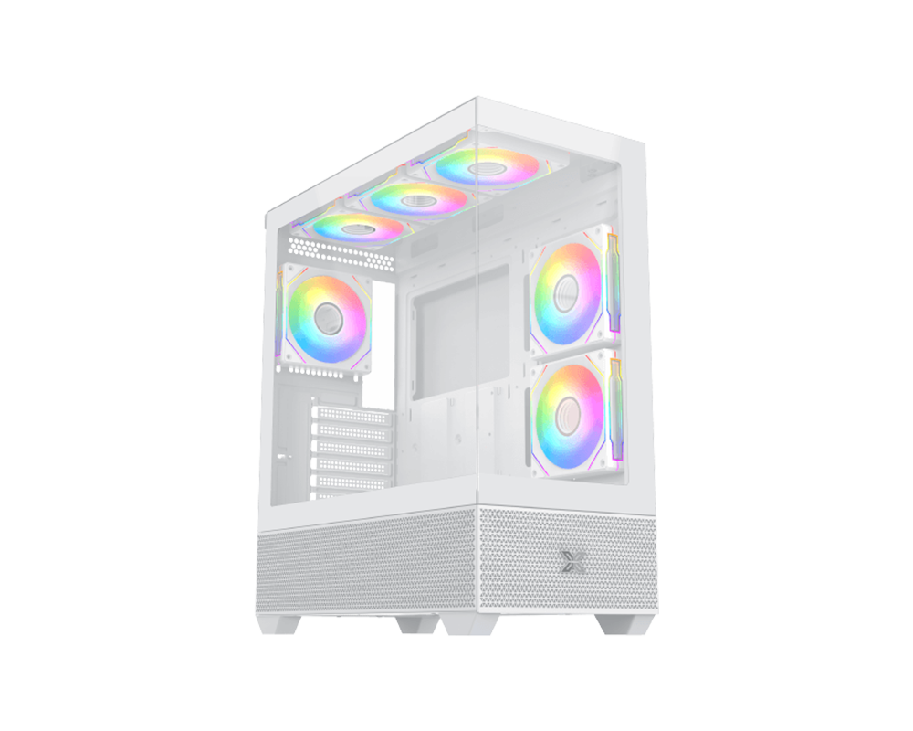 | ДОПЪЛНИТЕЛНИ | Support Motherboard up to E-ATX Superior Airflow and Ventilation Design Reverse Fan Blade Pre-installed on MB Panel Side Mesh Top Panel and 2 Tempered Glass Panel Design PSU Length Limitation: 200 mm |