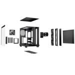 4 preinstalled Pure Wings 3 120mm PWM f ans for extraordinary airflow Angled slide-out fan frame on the side routes air directly to the GPU Fans can be installed in the lowered fan bay to line up perfectly with the case floor Spacious design for radiators up to 360mm an ATX motherboard 2 HDDs and SSDs at the same time |