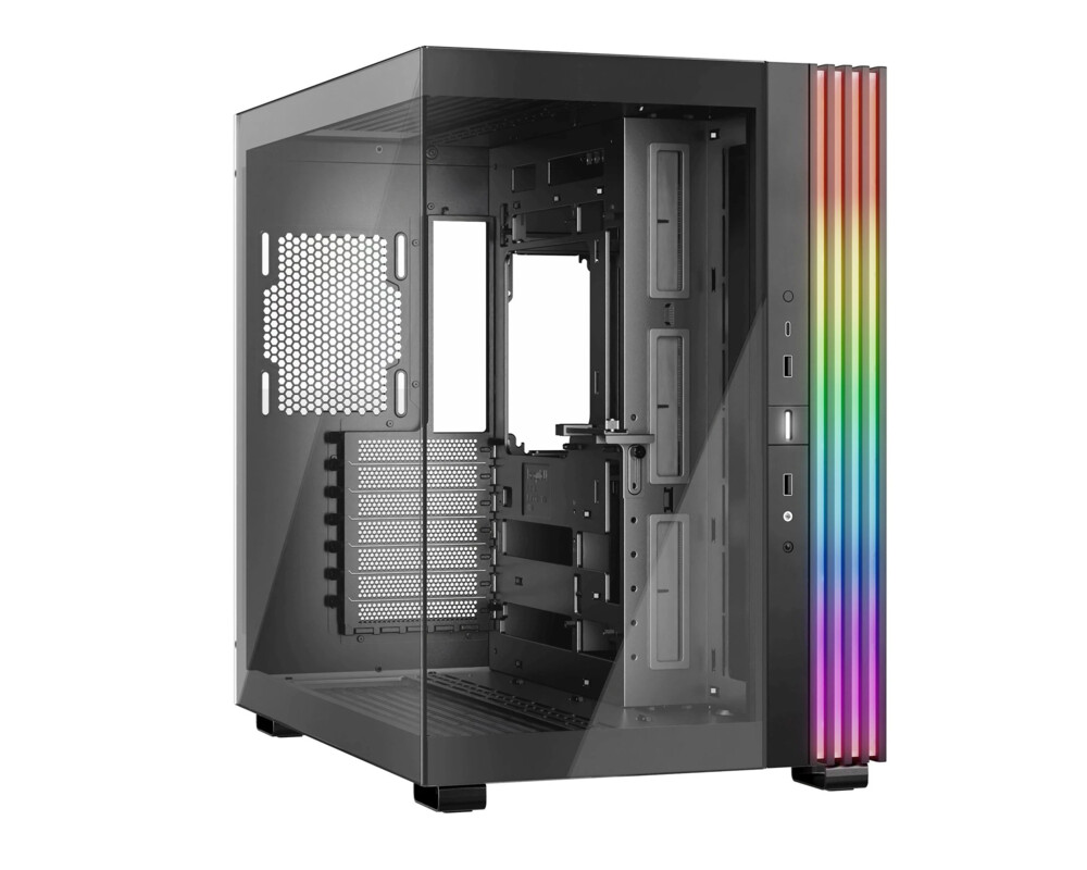 Can be switched to inverted or horizontal layout in literal seconds thanks to intuitive handling Impressive illumination from every angle with a massive ARGB LED strip Spacious design for up to two 360mm radiators at the same time and an ATX motherboard Support for motherboards with backside connector design |