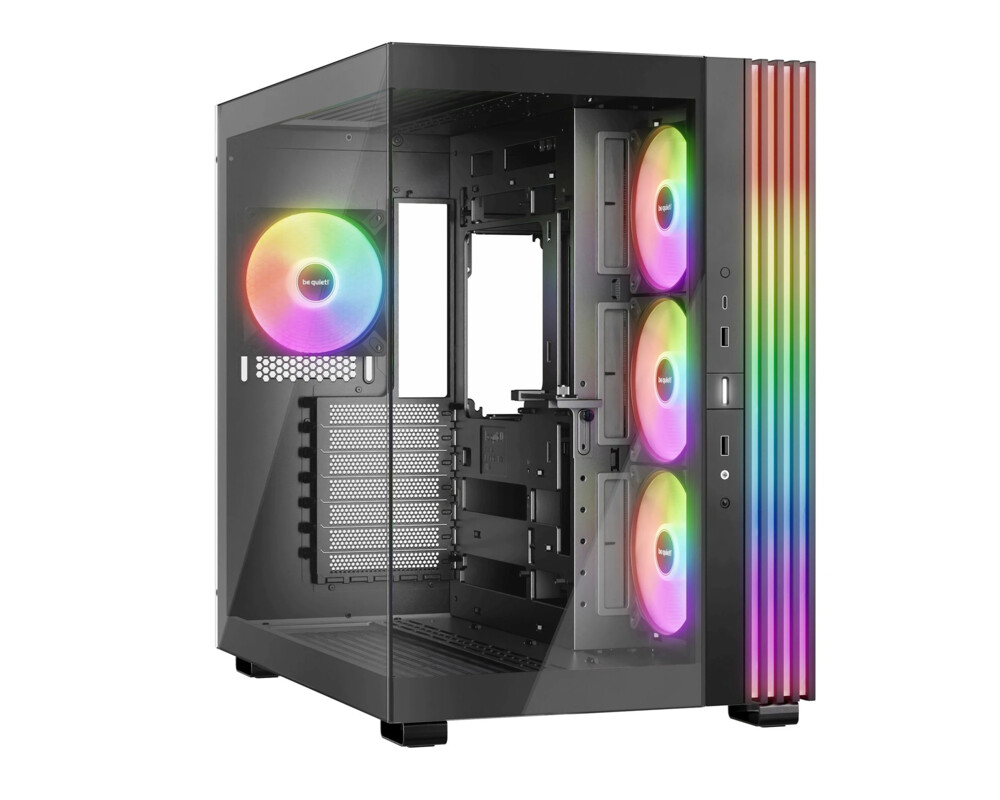| ДОПЪЛНИТЕЛНИ | Fully windowed front and side panel for a stunning panoramic view on all your PC components Impressive illumination from every angle with a massive ARGB LED strip 4 Light Wings LX 120mm PWM fans for high airflow and quiet operation Spacious design for up to two 360mm radiators at the same time and an ATX motherboard |