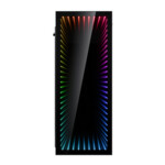 Fan control High-speed USB 3.1 interface Infinity mirror with Rainbow LED lighting(addressable) on the front Tempered glass front panel and side panel |