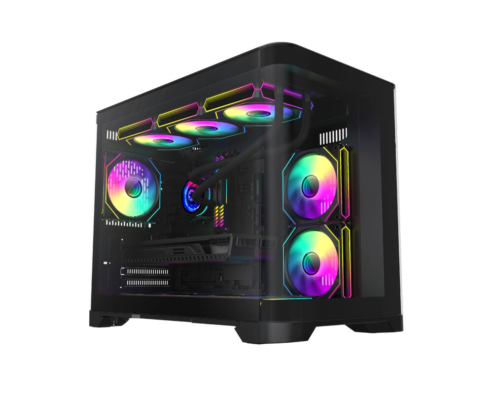 | ДОПЪЛНИТЕЛНИ | Double curved glass panel The panel is made of curved glass with beautiful lines and smooth vision With dazzling color fan or water cooling, the lamp is gorgeous and visible Bayonet press without trace quick release, 3 seconds quick release, easy to install without delay Cables, Managed.-Antechamber design hides unattractive cables |