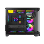 3 seconds quick release easy to install without delay Cables Managed.-Antechamber design hides unattractive cables Double curved glass panel The panel is made of curved glass with beautiful lines and smooth vision With dazzling color fan or water cooling the lamp is gorgeous and visible |