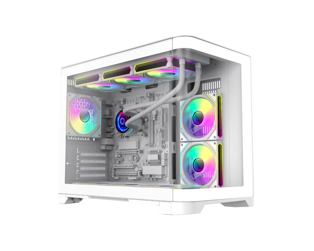 | ДОПЪЛНИТЕЛНИ | Double curved glass panel The panel is made of curved glass with beautiful lines and smooth vision With dazzling color fan or water cooling, the lamp is gorgeous and visible Bayonet press without trace quick release, 3 seconds quick release, easy to install without delay Cables, Managed.-Antechamber design hides unattractive cables |