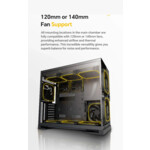 | ДОПЪЛНИТЕЛНИ | 5 x 140 mm ARGB fans Pre-Installed (Bottom and Front Side reversed) Optimized mesh panel for maximum airflow performance Supports 420mm radiator, E-ATX and 430mm GPUs 0.8-1.2mm thick steel for entire chassis Supports up to 13 x 120mm fans Fun yet functional built-in display platform Unique location for the PSU |