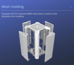 Double-sided table mat included Equipped with mesh panels on every side External I/O Hub - USB Type-A/USB Type-C/Audio I/O Vertical GPU layout |