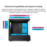 | ДОПЪЛНИТЕЛНИ | Stylish Wood-Grain I/O Interface Three-Sided Magnetic Dust Filter Support Top-Mount 360mm AIO Support NVIDIA® GeForce RTX" 40 Series GPU Pre-Installed 120mm ARGB PWM Fan x 3 |