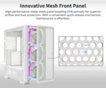 | Други характеристики | 6-port PWM & ARGB Hub, Dust Filters, Support 66mm radiator thickness at top, Support for Vertical GPU Mounting |