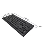 | Други характеристики | Rating: 5 V / 30 mA; Keycaps: Traditional; Hotkeys: 12 FN Multimedia Hotkeys; Character: Laser Engraving; Splash Proof: Yes; Adjustable Keyboard Legs: Yes; Cable Length: 150 cm; |