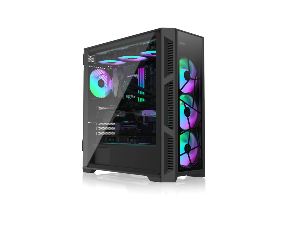 | ДОПЪЛНИТЕЛНИ | 4 A-RGB 120 mm fans included 4 mm Temepered Glass Hinged design glass side panel |