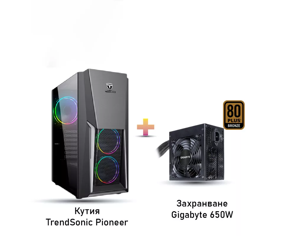 - Комплект кутия TrendSonic Pioneer + захранване Gigabyte 650W 80 PLUS bronze (ID: 296282)