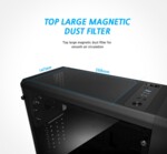 | ДОПЪЛНИТЕЛНИ | Full Acrylic side panel Възможност за монтаж на водно охлаждане до 240мм отпред Филтри за прах |