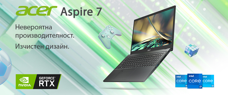 Изключително многофункционалният лаптоп Acer Aspire 5 се поддържа от до най-новите процесори от 12-о поколение Intel® Core™ i71 за извършване на множество задачи и видеокарта NVIDIA®1 или от до новите процесори AMD Ryzen™ от серия 50001 с видеокарта Radeon™ за повишена производителност при редактиране на снимки и видеоклипове.
