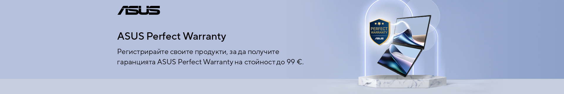 - * Продуктови линии с покритие от ASUS Perfect Warranty: Лаптопи Zenbook, Vivobook, ProArt, TUF и ROG, закупени от нас в периода от 1 януари 2026 г. до 31 декември 2026 г.