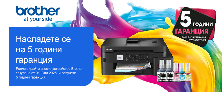 Условието за получаване на безплатна удължена 5-годишна гаранция от Brother е да регистрирате закупеното устройство в периода от 1 юли 2025 г. до 31 март 2026 г.: https://atyourside.brother.bg/register-your-device/your-product.